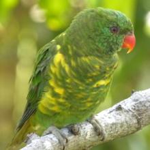 Scaly-breasted Lorikeets are active, noisy, and social birds, frequently found in pairs or flocks. When resting, they roost communally in dense trees, sometimes in large groups numbering hundreds of individuals.