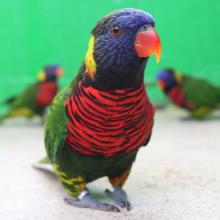 Their bright green and red feathers blend in well with the flowering plants they feed upon, but Lorikeet safety also comes from having their flock on the lookout for predators.