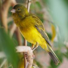 Canaries feed in flocks, consuming seeds, grasses, and occasional insects.
