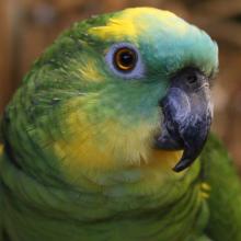 Les Amazones à front bleu se nourrissent principalement de fruits, de baies, de graines, de noix et de fleurs. Elles observent d'autres perroquets pour apprendre quels aliments sont sûrs à consommer.