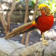 ​The Golden Pheasant has a diverse diet that includes berries, seeds, leaves, and bugs. They tend to forage in forests without a lot of undergrowth.