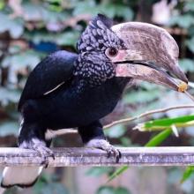 The Silvery-cheeked Hornbill is predominantly black with white patches and a silvery-grey head and neck. The species possesses a large beak with a casque on top, which is more prominent in males. A casque refers to the hollow chamber located on the upper part of the beak. The purpose of the casque remains unknown, though theories suggest it may amplify the hornbill's call or aid in identifying individuals within a flock.